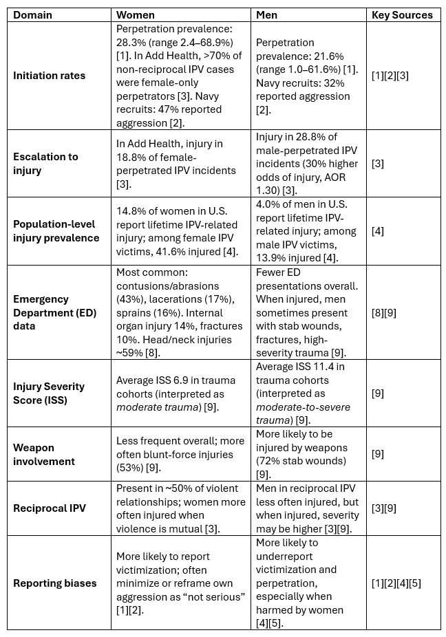 Summary Table: Male- and Female-Initiated IPV – Initiation, Escalation, Injuries, and Reporting