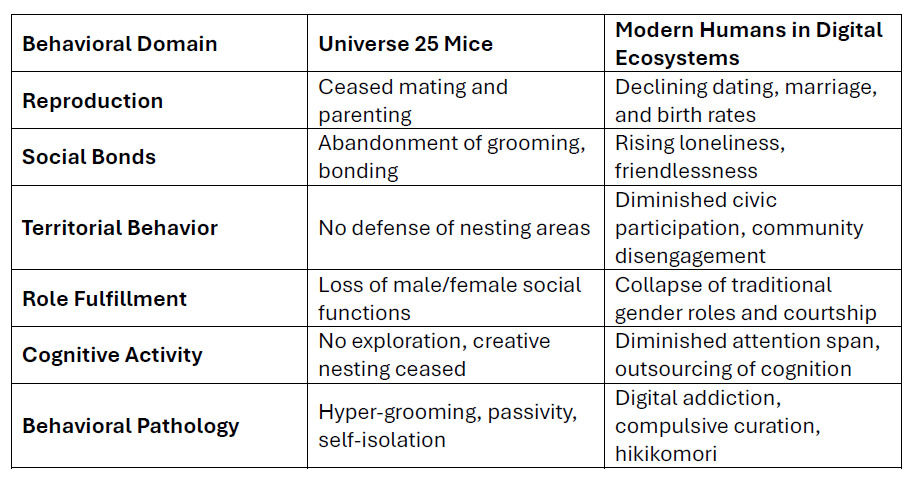 Table 5: Behavioral Parallels – Mice in Universe 25 vs. Humans in Digital Ecosystems